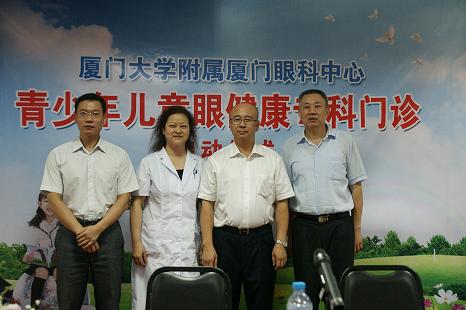 10月23日上午9點,廈門眼科中心“青少年兒童眼健康??崎T診”在該中心17樓舉行隆重的揭牌儀式。廈門市教育局任勇副局長、廈門市衛(wèi)生局洪豐穎副局長、廈門市中小學衛(wèi)生保健所余紅等領導出席了此次揭牌儀式并發(fā)表了熱情洋溢的講話。市領導們一致認為,廈門眼科中心“青少年兒童眼健康??崎T診”的成立,是造福于我市少年兒童視覺健康的一件大事,也是我省防盲治盲事業(yè)的一件大事,必將帶動我省兒童防盲事業(yè)的發(fā)展。