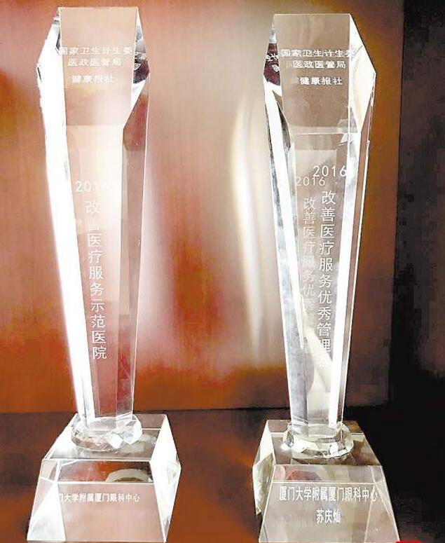 國家衛(wèi)計(jì)委和健康報(bào)頒發(fā)給廈門眼科中心的獎(jiǎng)杯。