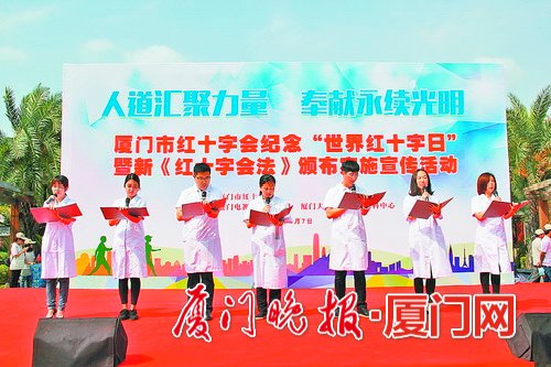 今天是第70個(gè)世界紅十字日,新《紅十字會(huì)法》也于今日起施行。新法增加了紅十字會(huì)參與推動(dòng)無(wú)償獻(xiàn)血、造血干細(xì)胞捐獻(xiàn)及遺體器官捐獻(xiàn)等方面的職責(zé)。昨天,市紅十字會(huì)攜手廈門(mén)眼科中心在五緣灣舉行“紀(jì)念世界紅十字日暨新《紅十字會(huì)法》頒布實(shí)施宣傳活動(dòng)”,數(shù)百名志愿者及家屬參與。