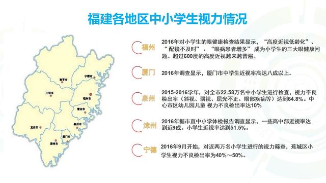 寧德也是去年做了一次兩萬個小學生的篩查,發(fā)現(xiàn)小學生視力不良檢出率是40%到50%。