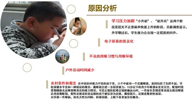 全國十三五健康規(guī)劃,其中包括眼健康規(guī)劃,在眼健康規(guī)劃的十幾條當中涉及到兒童有9條,這里提出來三條是我們應該關注的。