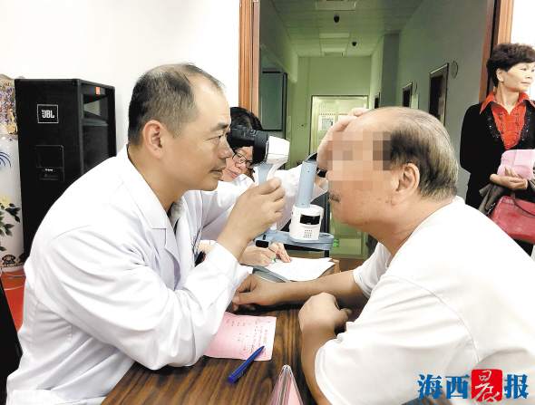 陳偉在為患者檢查眼睛。醫(yī)院供圖