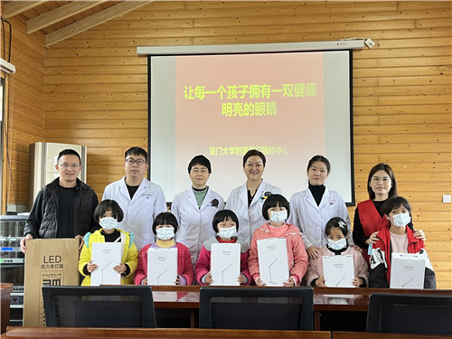 然而,在2022年新年開(kāi)工第二天(1月5日),該院門診、手術(shù)室、病房并未發(fā)現(xiàn)潘美華教授忙碌的身影。她去哪兒了?原來(lái),為貫徹落實(shí)教育部等15部門聯(lián)合印發(fā)的《兒童青少年近視防控光明行動(dòng)工作方案(2021-2025年)》要求,多方位、科學(xué)、精準(zhǔn)、長(zhǎng)效地做好廈門市兒童青少年近視綜合防控,協(xié)助學(xué)校建立近視防控體系,潘美華親自領(lǐng)銜帶隊(duì),深入同安區(qū)蓮花中心小學(xué)上陵小學(xué)教學(xué)點(diǎn)和白交祠小學(xué)教學(xué)點(diǎn),為鄉(xiāng)村孩子進(jìn)行視力篩查、科普宣教、贈(zèng)送護(hù)眼大禮包等公益活動(dòng)。