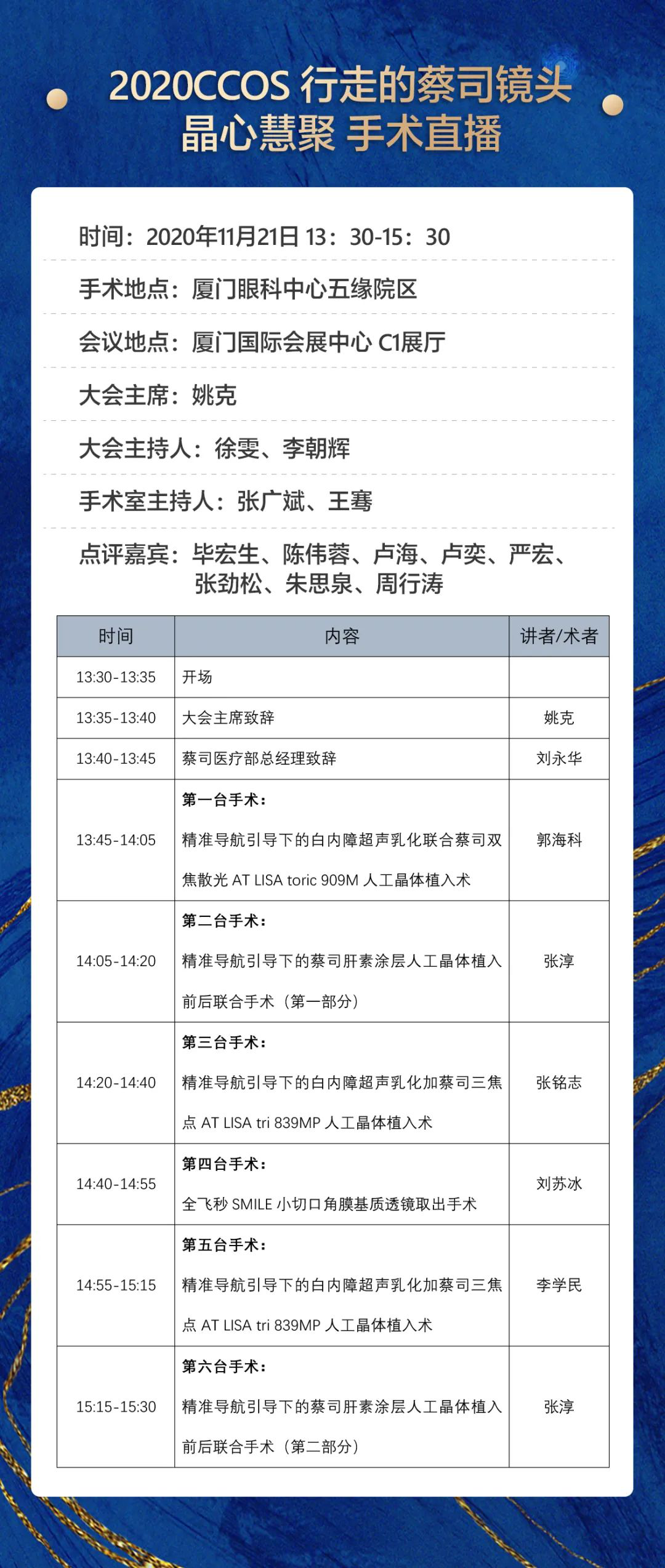 11月21日至22日,在全國(guó)眼科年會(huì)(2020CCOS)期間,4場(chǎng)眼科手術(shù)實(shí)操技術(shù)“云課堂”將精彩上演。面向全國(guó)眼科同道直播的近20臺(tái)手術(shù),將全部在廈門眼科中心五緣院區(qū)完成。
