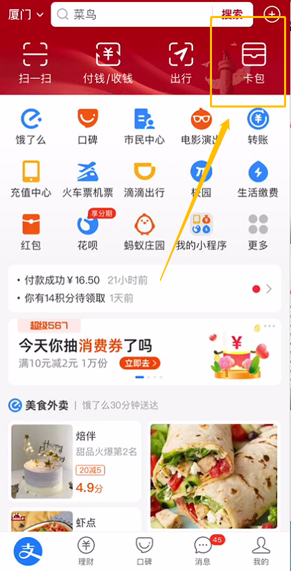 進(jìn)入支付寶,點(diǎn)擊“卡包”-“證件”-“醫(yī)保電子憑證”