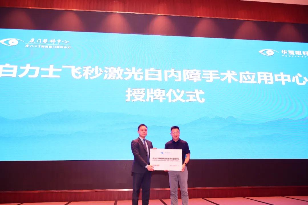 科技賦予光明力量,點亮高清美好生活。在論壇開幕式上同步舉行強生眼力健“Catalys白力士”眼科飛秒激光治療機開機發(fā)布會。強生眼力健中國區(qū)“飛秒激光眼表”事業(yè)部負責人宋漢崴為廈門眼科中心授予白力士飛秒激光白內障手術應用中心、白力士飛秒激光白內障手術示范中心牌匾。“Catalys白力士”飛秒激光治療系統(tǒng)廣泛應用于全球,該系統(tǒng)于6月在廈門眼科中心先行裝機落戶,此回正式開機,標志著廈門眼科中心在白內障無刀、智能新時代上再迎來新的里程碑。