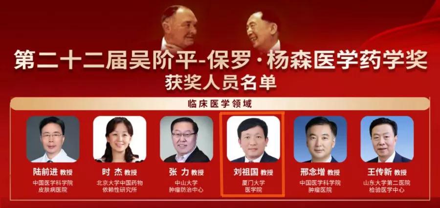 截至2021年,先后有449位優(yōu)秀醫(yī)藥衛(wèi)生工作者榮獲該項殊榮,其中共有38名院士。此次吳楊獎全國共有15人獲此殊榮,我院劉祖國教授為其中之一。