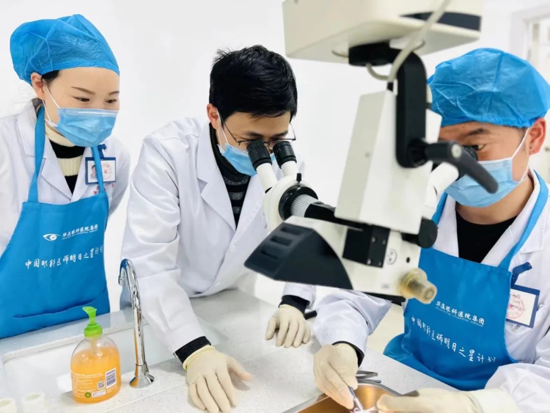 ▲修陽暉(中)帶教中國(guó)眼科明日之星學(xué)員進(jìn)行動(dòng)物眼顯微手術(shù)操作
