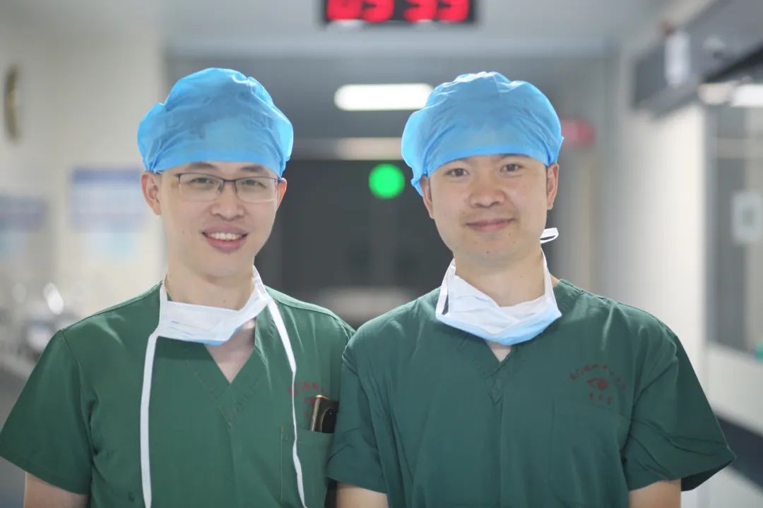 ▲修陽暉(左)與培養(yǎng)的主刀學(xué)員合影留念