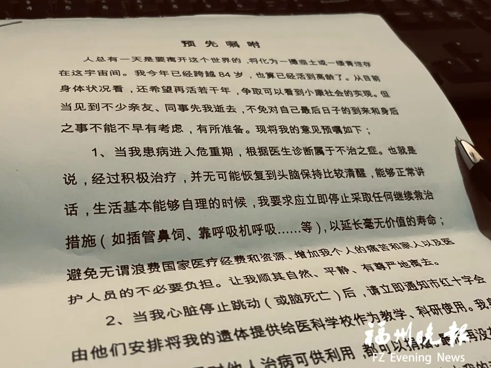 預(yù)囑中,彭老提到,當(dāng)病情進(jìn)入危重期,屬于不治之癥時(shí),不要做無謂搶救,以延長(zhǎng)毫無價(jià)值的壽命,“避免無謂浪費(fèi)國(guó)家醫(yī)療經(jīng)費(fèi)和資源、增加我個(gè)人的痛苦和家人以及醫(yī)護(hù)人員的不必要負(fù)擔(dān)。讓我順其自然、平靜、有尊嚴(yán)地離去”。
