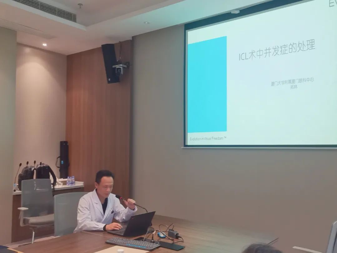 本次培訓班課程內(nèi)容豐富,由廈門眼科中心資深屈光專家鄭林主任、劉才遠教授、揭黎明主任、陳亮主任擔任授課講師,從《ICL術(shù)中并發(fā)癥的判斷和處理》、《ICL術(shù)后并發(fā)癥的判斷和處理》、《術(shù)前特殊案例的思考和設(shè)計》、《ICL晶體取出和置換技巧》四個維度進行深入淺出地講解,為學員們呈現(xiàn)了一場精彩的學術(shù)對話與思想盛宴。
