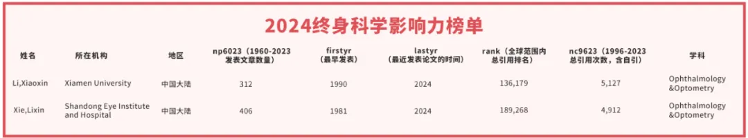 語文老師告別超千度【文章導(dǎo)讀】近日,美國斯坦福大學(xué)發(fā)布了第七版《全球前2%頂尖科學(xué)家榜單2024》。國際眼科科學(xué)院院士、廈門眼科中心總院長黎曉新教授、廈門眼科中心院士工作站導(dǎo)師中國工程院院士謝立信教授