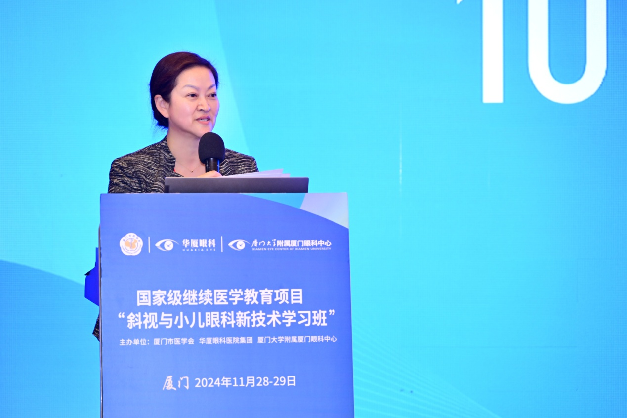 廈門(mén)眼科中心業(yè)務(wù)副院長(zhǎng)、斜視與小兒眼科學(xué)科帶頭人潘美華教授主持開(kāi)幕式