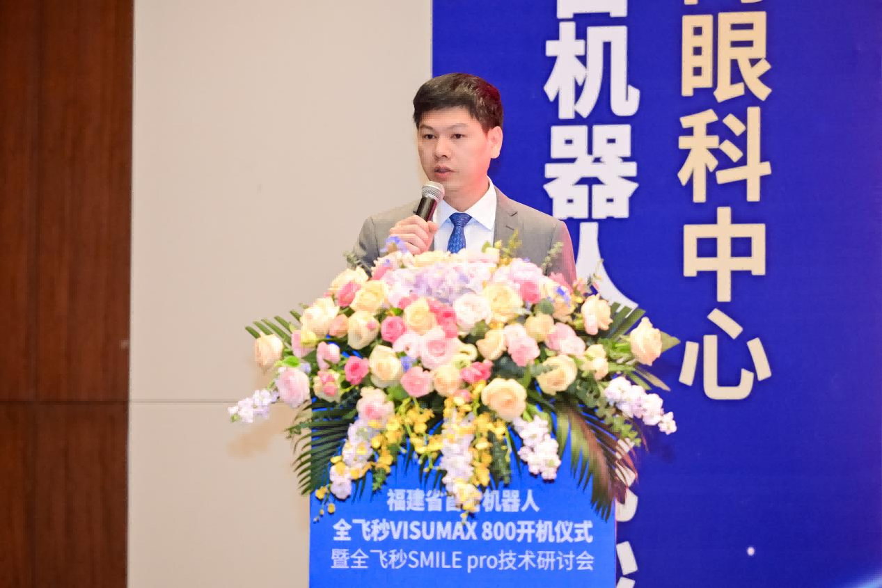 蔡司公司王建中總監(jiān)對廈門眼科中心成為新一代機器人全飛秒VISUMAX 800設(shè)備的首批裝機機構(gòu)表示祝賀。他表示新一代機器人全飛秒VISUMAX 800和新微創(chuàng)SMILE pro手術(shù)必將為中國屈光事業(yè)的進一步發(fā)展注入新動能。