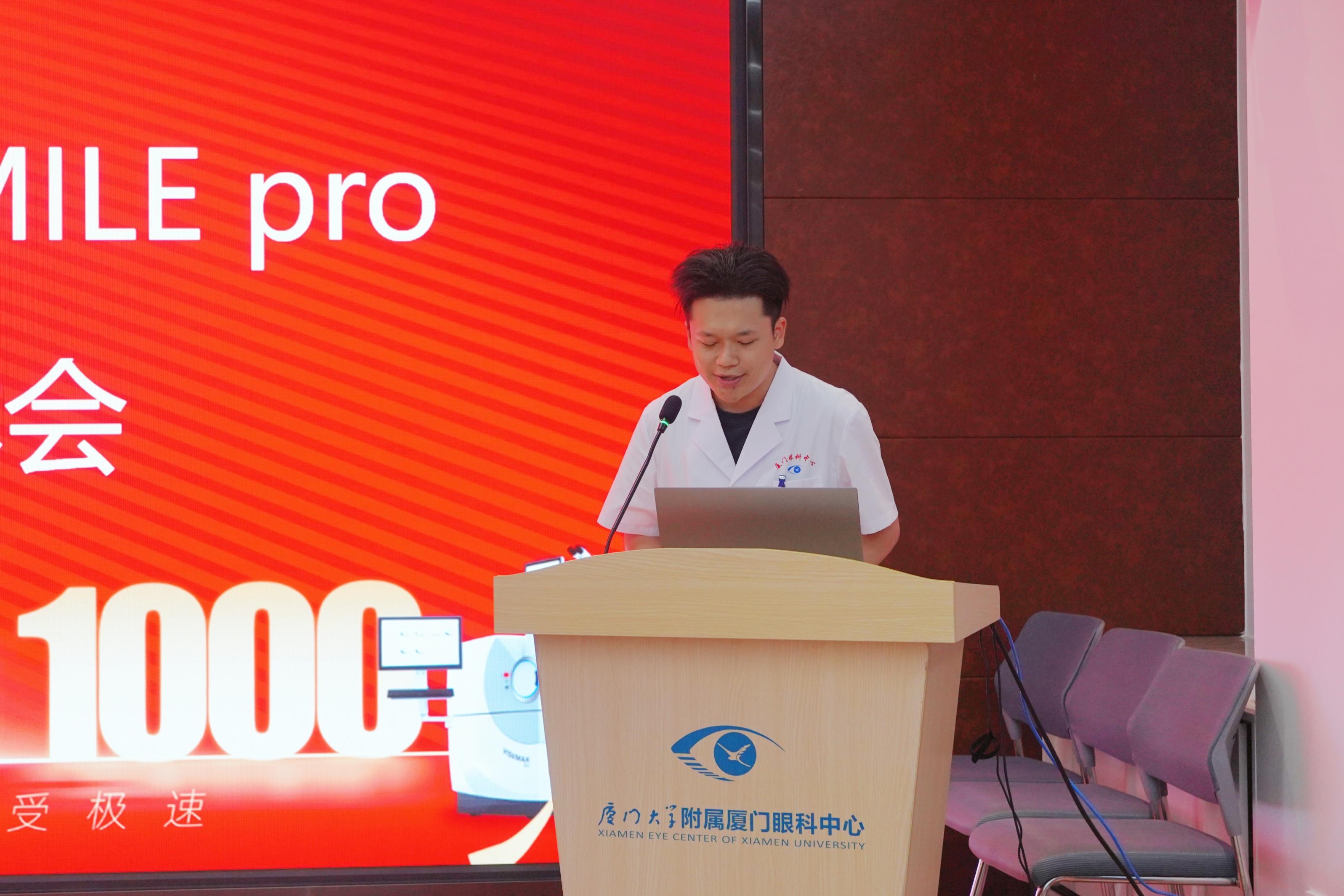 隨后,廈門眼科中心屈光科住院醫(yī)師陳育峰還分享了親身體驗SMILE Pro手術(shù)成功摘鏡的過程。