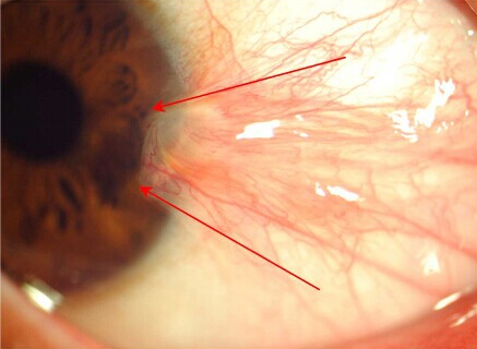 胬肉一旦到達(dá)角膜邊緣就必須手術(shù)切除,尤其是處于進行期的胬肉,表現(xiàn)為頭部(胬肉靠近角膜的一端)隆起,附近角膜渾濁,在前彈力層及淺基質(zhì)層有細(xì)胞浸潤,頸部寬大,體部肥厚,表面不平,有粗大而擴張的血管。即使處于靜止期的胬肉,如果拖延治療的時間太長,手術(shù)時不容易切除干凈,會增大復(fù)發(fā)的可能性。