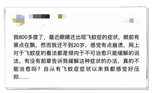 高度近視更愛(ài)招“蚊子”,也就是飛蚊癥,醫(yī)學(xué)上稱玻璃體混濁,表現(xiàn)為人看東西時(shí)眼前有黑影飄動(dòng),就像蚊子飛舞一樣,主要是玻璃體液化引起的。